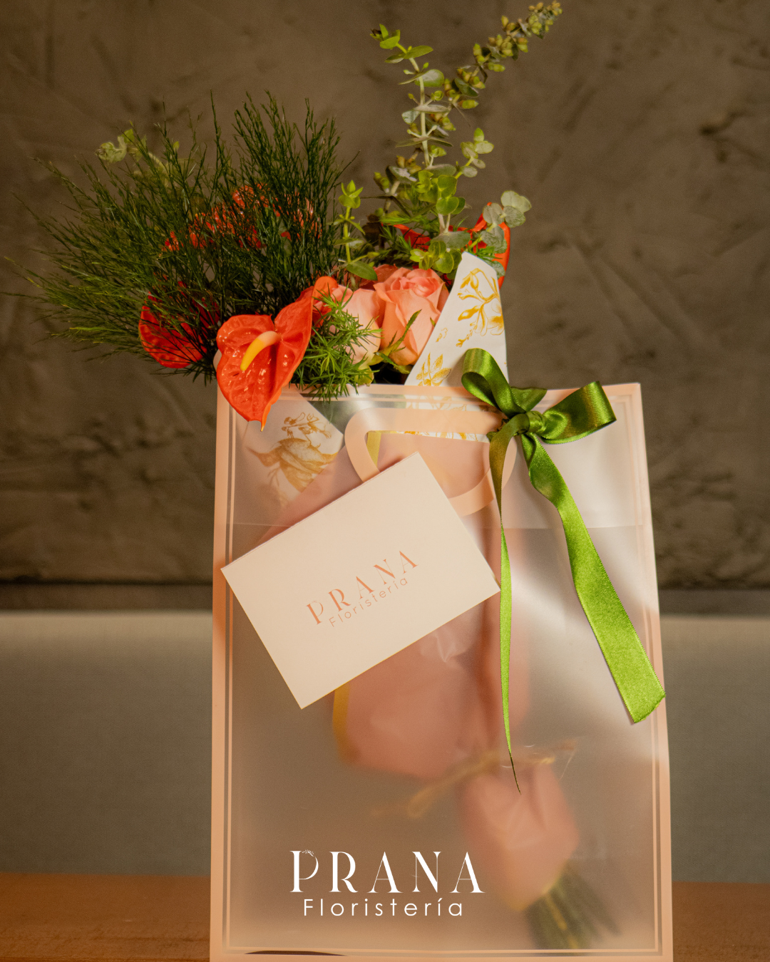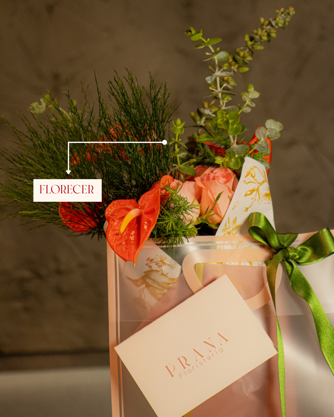 Una composición fresca y llena de carácter que combina anturios vibrantes, rosas en tonos suaves y una selección de follajes que aportan movimiento y textura. Presentado en un empaque moderno con detalles delicados, Florecer simboliza crecimiento, nuevos comienzos y la belleza de reinventarse.